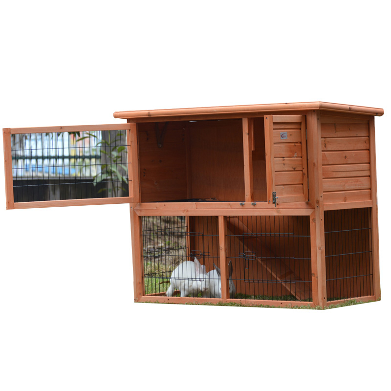 1. Solid material, stable structure. The wooden rabbit cage is made of high-quality solid fir wood. The material is solid, divided into sleeping area and activity area, and the structure is stable.