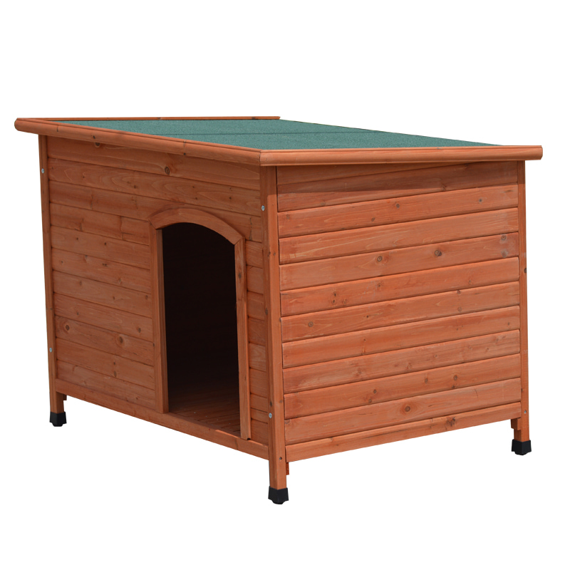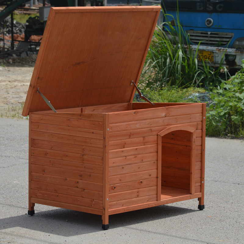 · Made with high-quality wood, this doghouse offers a sturdy and long-lasting shelter for your furry friend.The roof is treated to be water-resistant, protecting your pet from harsh weather conditions.The raised floor keeps your dog dry and comfortable, preventing moisture buildup.Suitable for both indoor and outdoor use, this kennel can be placed in your backyard or inside your home.With ample room for small, medium, and large dogs, your pet can move around and rest comfortably.The removable floor simplify waste cleanup, making this dog house indoor/outdoor hybrid the ultimate hygiene solution. Whether placed in a sun room or backyard, your dog houses for large dogs outside will stay fresh with minimal effort.